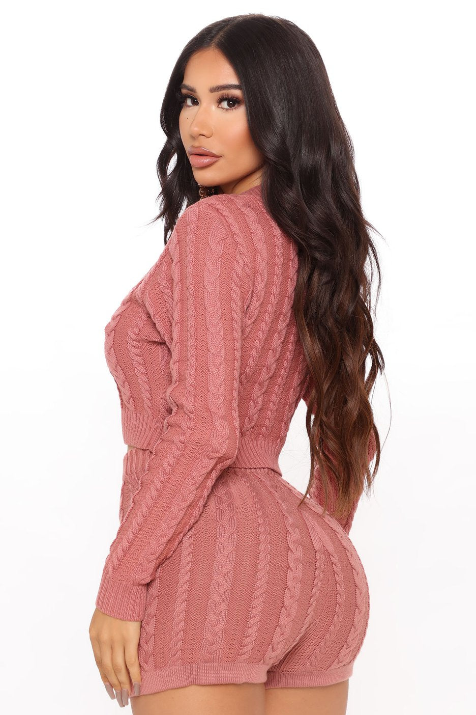 طقم سويت شيرت قصير محبوك - أبيض