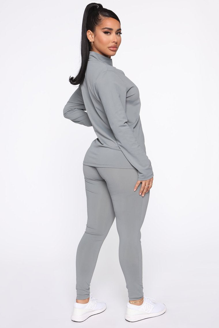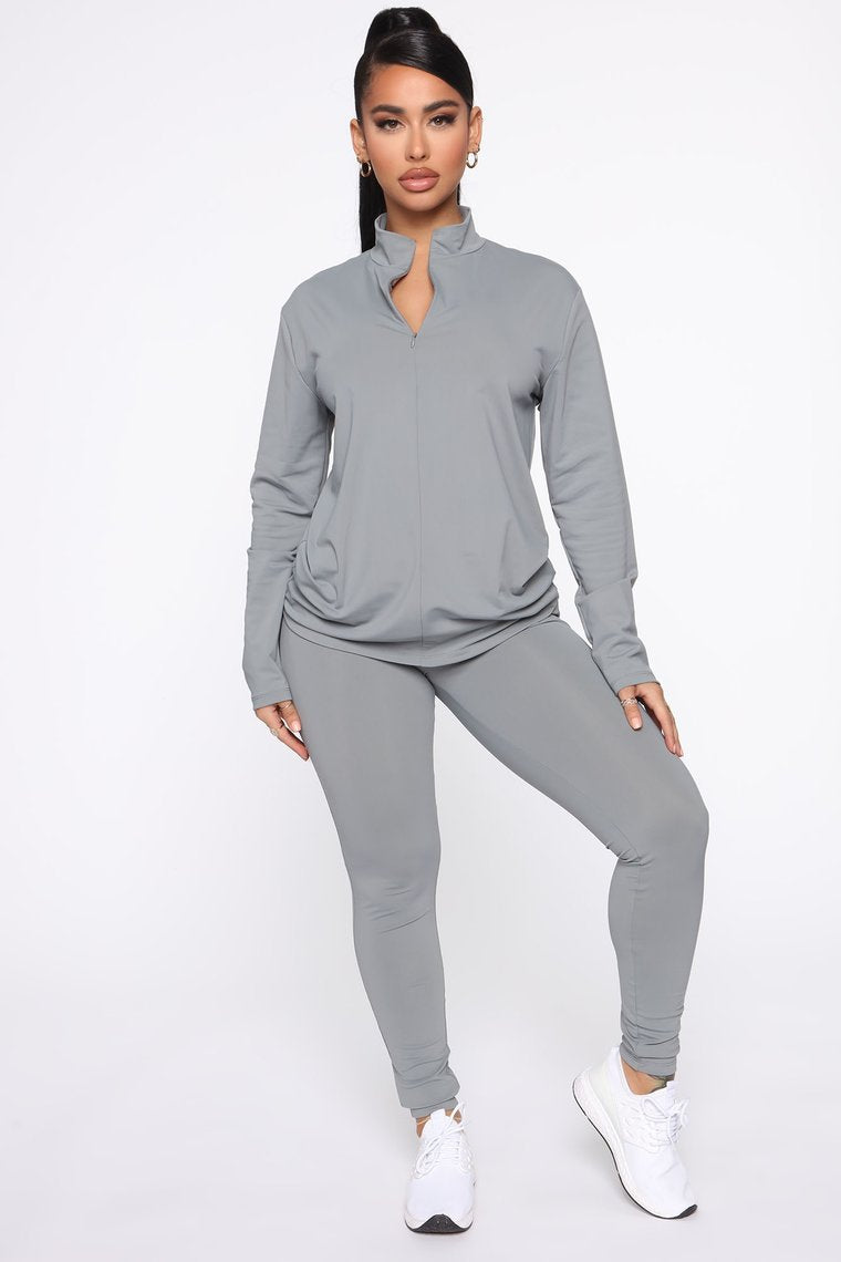 - طقم مكون من قطعتين: كم طويل، رقبة عالية، وبنطال ضيق بطول كامل