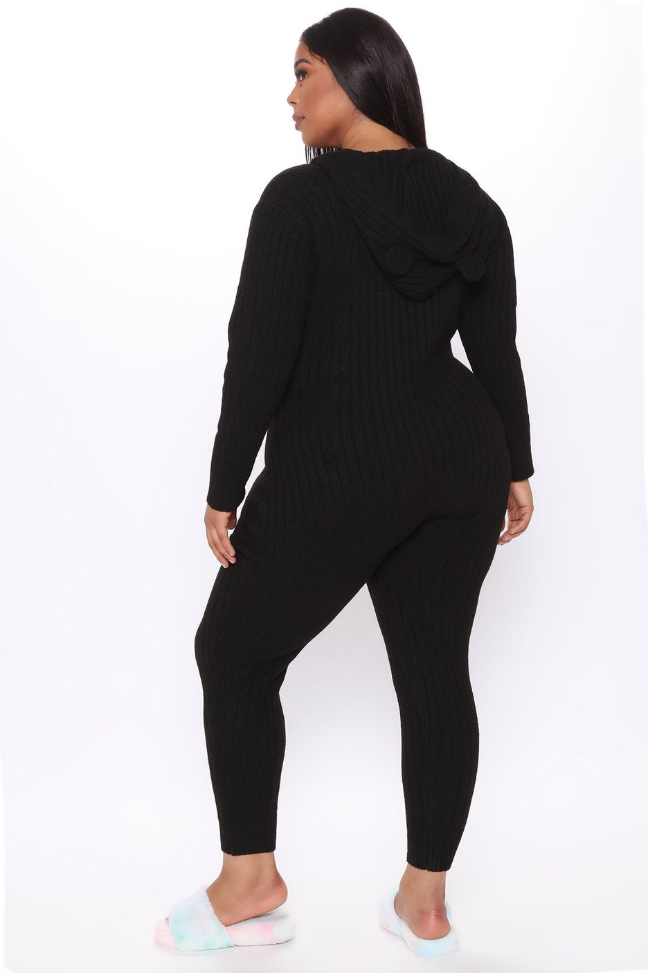 कानों के साथ क्यूट हुडेड जंपसूट - काला