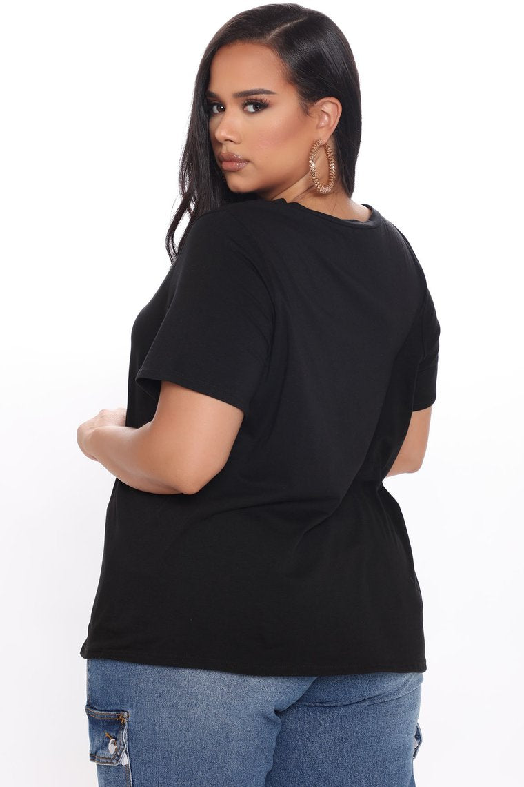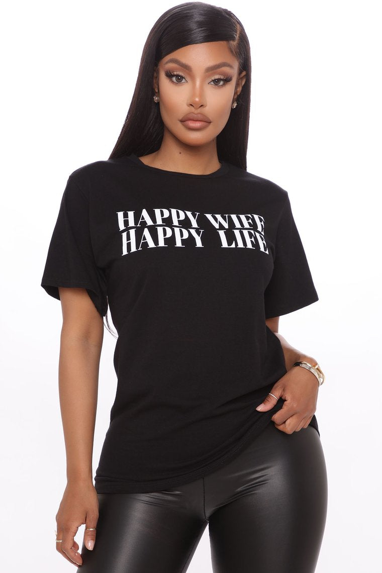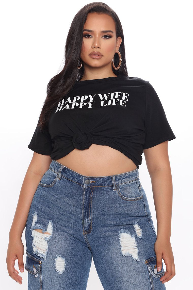 हैप्पी वाइफ हैप्पी लाइफ शॉर्ट स्लीव टॉप - काला