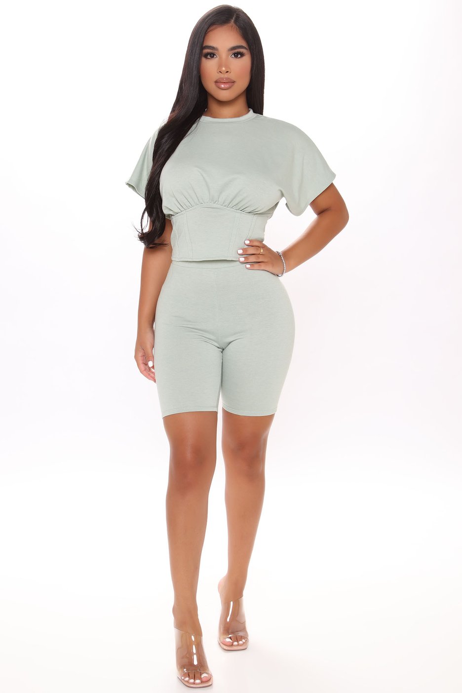 लेट्स चिल बाइकर शॉर्ट सेट - सेज