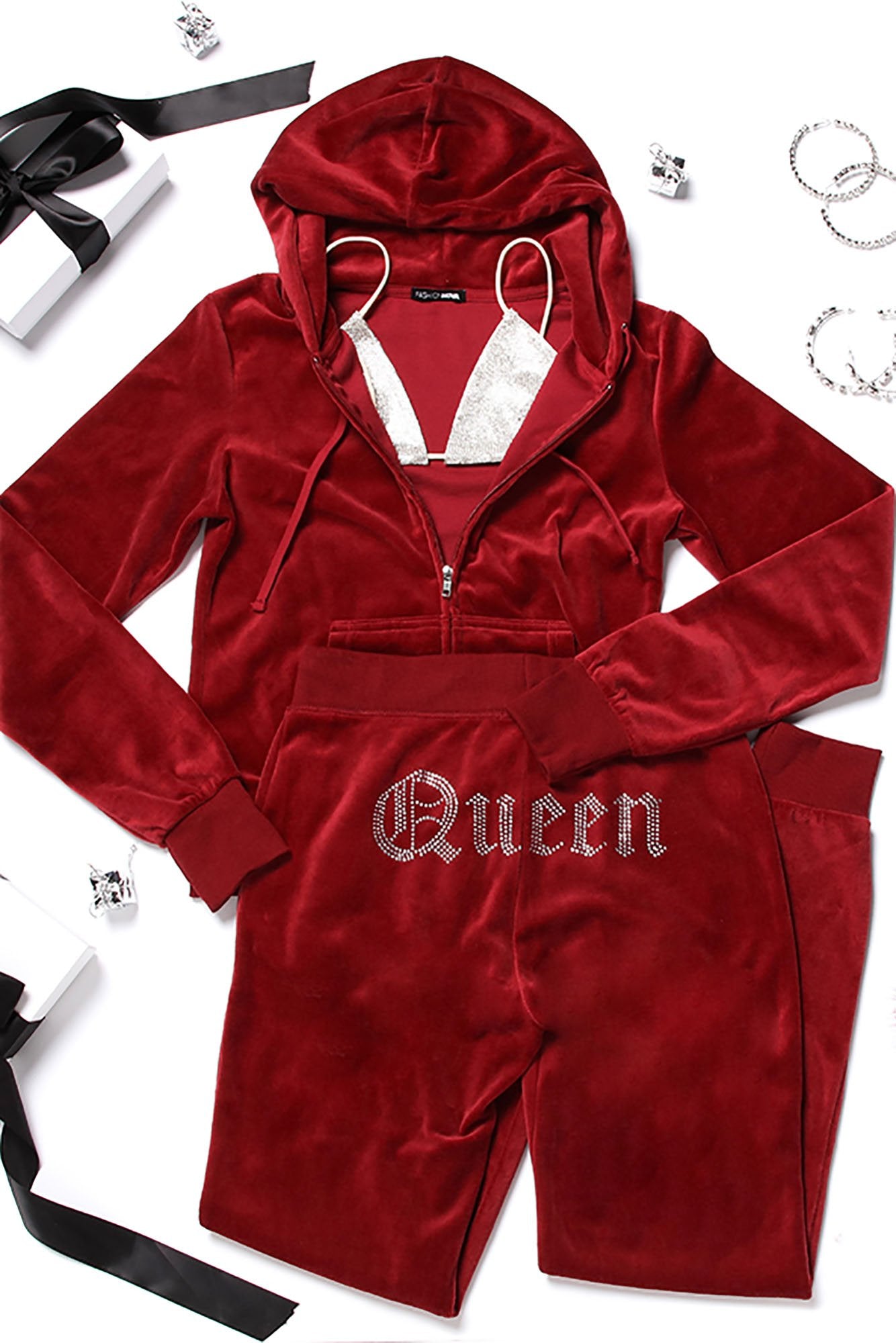 ओरिजिनल ट्रेंडसेटर क्वीन वेलोर सेट - बरगंडी