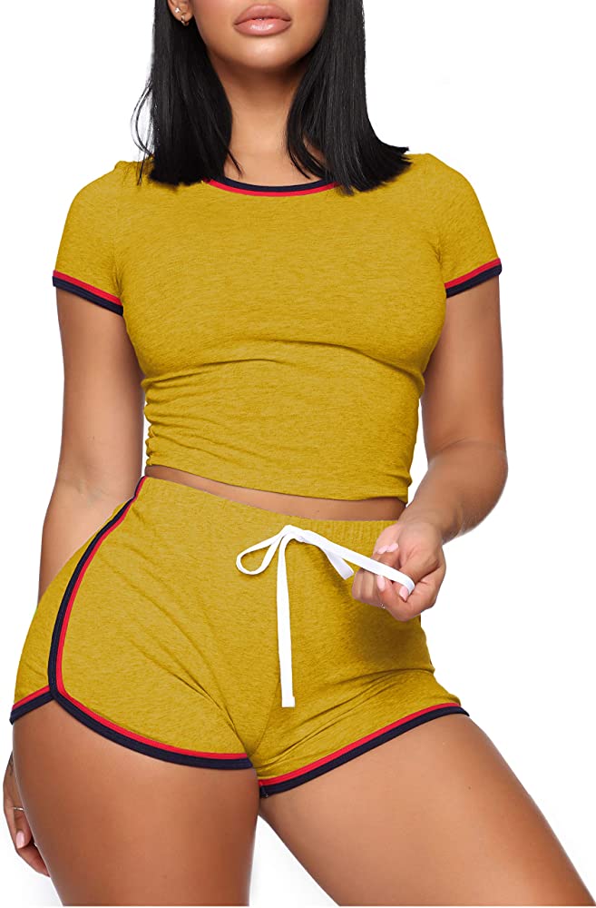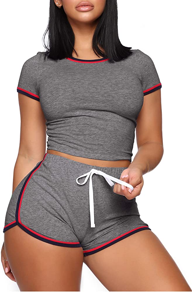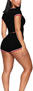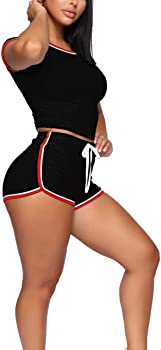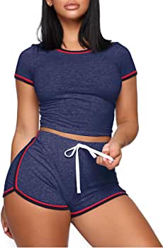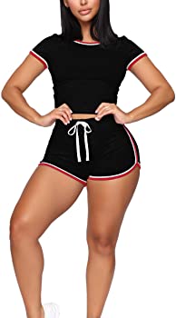 WIHOLL महिलाओं के लिए कैज़ुअल 2 पीस शॉर्ट स्लीव आउटफिट सेट समर सेक्सी एक्टिव ट्रैकसूट