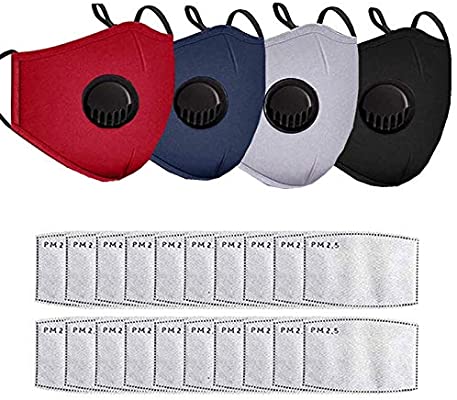 4pcs Reusable and Breathable Face Bandanas with Breathing Valve & 20pcs Activated Carbon Filters (4pcs+20filters)