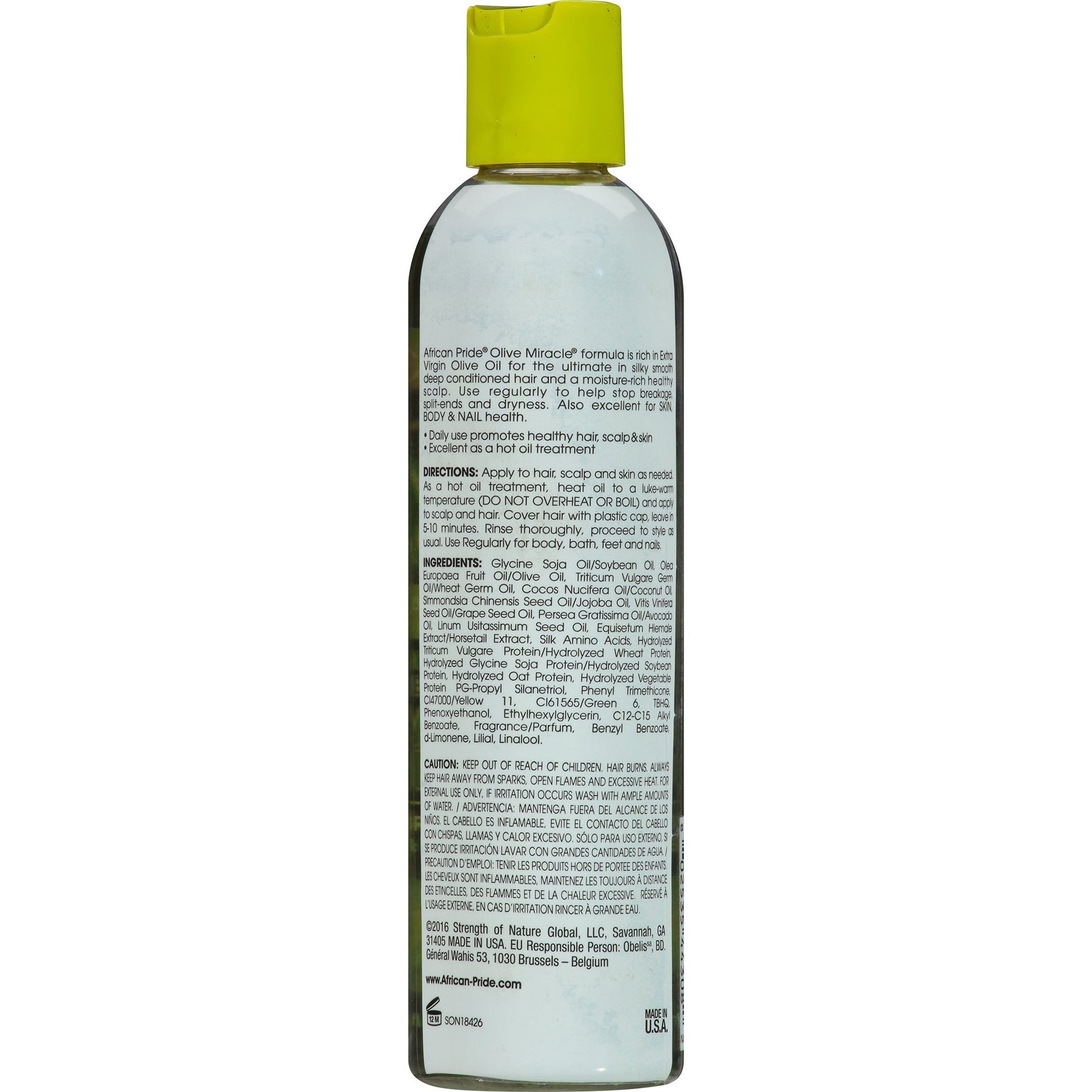 Instructions: Apply to hair, scalp and skin as needed. As a hot oil treatment, heat oil to a luke-warm temperature (Do not overheat or boil) and apply to scalp and hair. Cover hair with plastic cap, leave in 5-10 minutes. Rinse thoroughly, proceed to style as usual. Use regularly for body, bath, feet and nails.