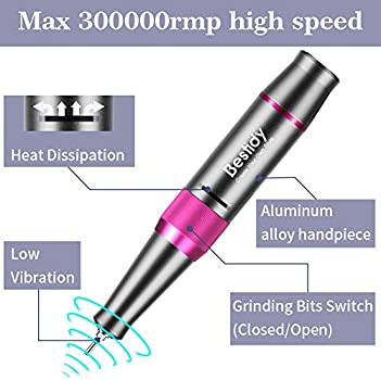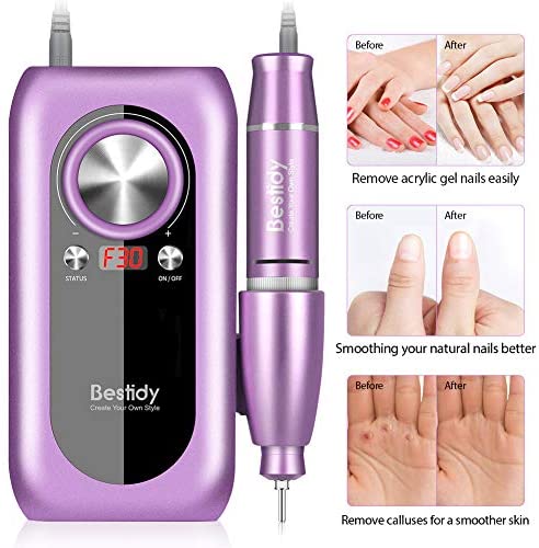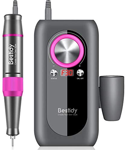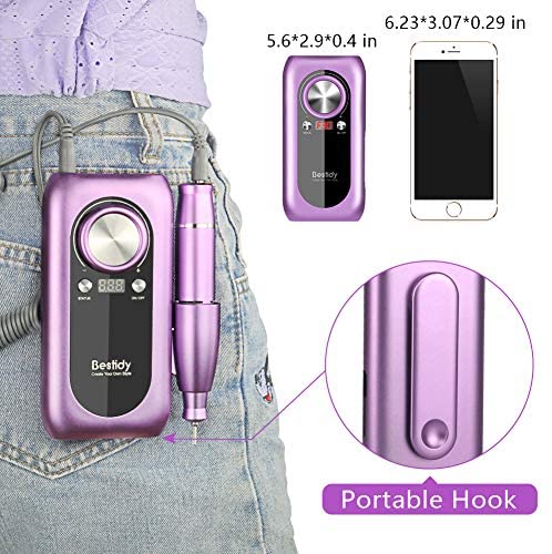 Bestidy Nail Drill Machine,30000rpm Professional Rechargeable Nail Drill Kit with 2000mAh Phone Power Bank Portable Electric Acrylic Nail Tools for Exfoliating, Grinding, Polishing