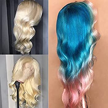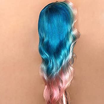 - Ombre Rainbow Color: 100% Unprocessed Ombre Blue Colored Pink Rainbow Brazilian Body Wave 13×4 Lace Front Wigs Human Hair . This is A New Style for Ombre Color Pink and Blue.