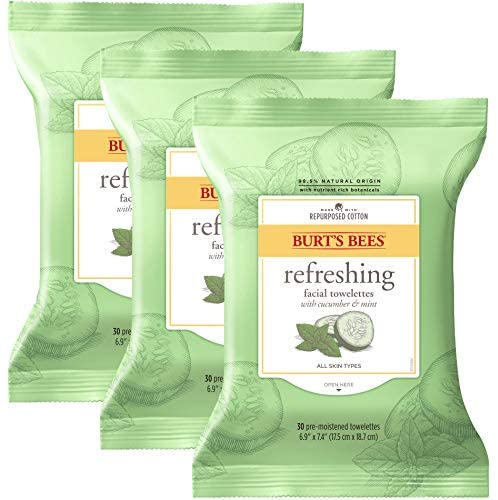 Burt's Bees Sensitive Facial Cleansing Towelettes with Cucumber and Mint - 30 Count (Pack of 3)