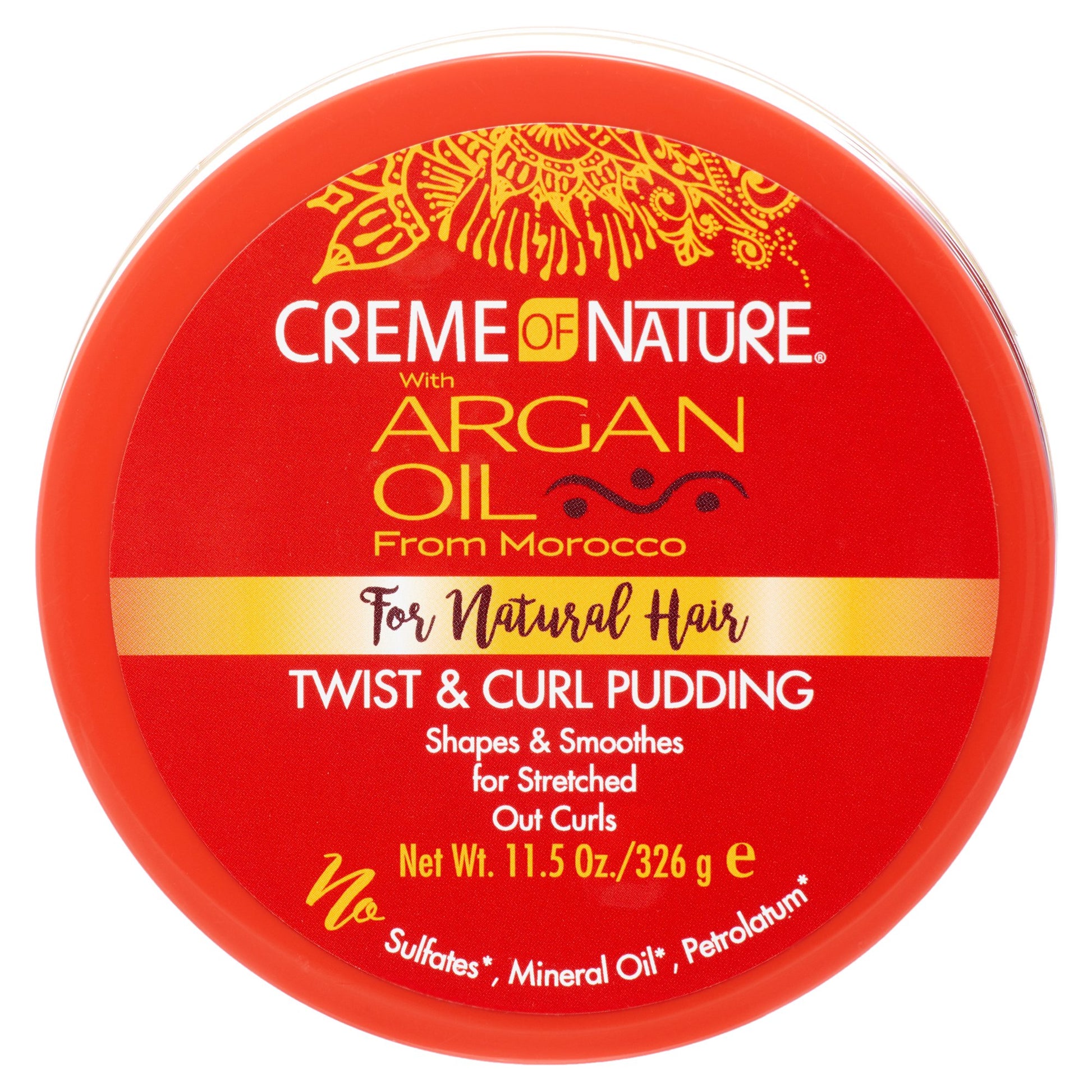 Creme Of Nature® Argan Oil Pudding Perfection? Curl Enhancing Creme. Made with a butter blend of Argan Oil for exotic shine. A moisture-enriched, curl enhancing creme, formulated especially to tackle frizz, shrinkage and dryness of natural coils and curls. This versatile pudding delivers soft, stretched curls with exotic shine all-in-one jar. Perfect for twist outs, shingling, updos, coiling. No added sulfates, parabens, mineral oil, petrolatum.