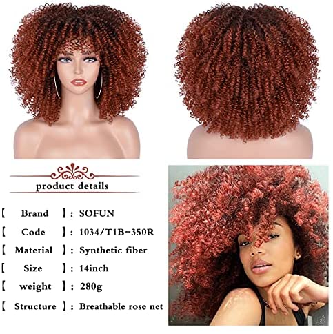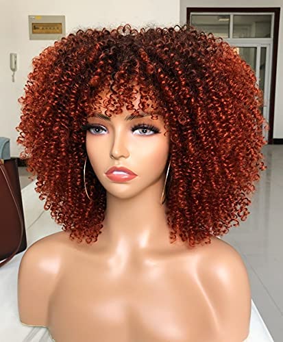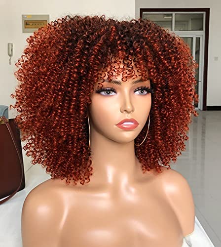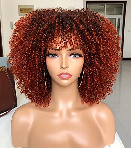 Curly Wig with Bangs for Black Women Short Kinky Curly Wigs Ombre Orange Big Full Synthetic Wig(14 Inches Ombre Orange)
