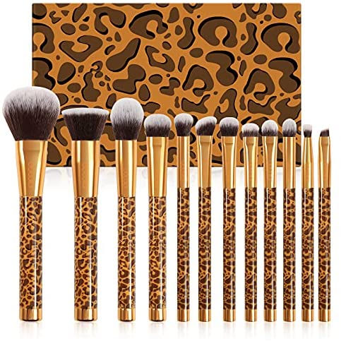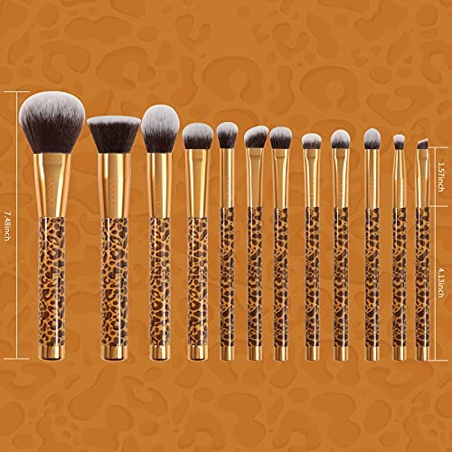 Docolor Makeup Brushes Leopard 12 Pieces Professional Makeup Brush Set Premium Synthetic Brushes Set Kabuki Foundation Blending Brush Face Powder Blush Concealers Eye Shadows Make Up Brushes Kit