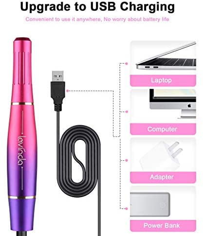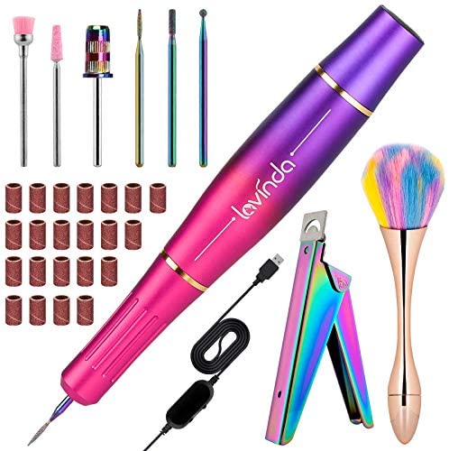Electric Nail Drill Machine Kit, Lavinda Aurora Portable Upgraded USB Efile Set For Acrylic Gel Nails, 20000RPM with Diamond Drill Bits Nail Clipper and Brush, Home Salon Use
