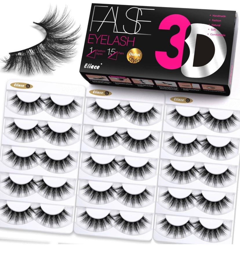 Eliace Lashes Wispy Luxury False Eyelashes Wispies Natural 3D Mink Eyelashes Faux Mink Lashes Fluffy Cat Eye Lashes Pack Professional Fake Eye lashes Natural Look Reusable Strip Lashes 15 Pairs