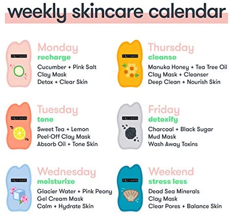 - Includes: (2) Cucumber Pink Salt Masks, (2) Manuka Honey Masks, (2) Sweet Tea Lemon Masks, (2) Charcoal Black Sugar Masks, (2) Glacier Water Pink Peony Masks, and (2) Dead Sea Minerals Masks