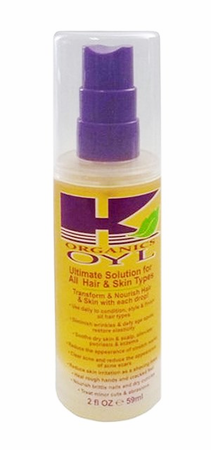 K Organics Oyl Oil is for styling and finishing all hair types, diminish wrinkles, age spots, restore elasticity, soothe dry skin and scalp, alleviate psoriasis and eczema, reduce the appearance of stretch marks, acne and reduce the appearance of acne scars. |