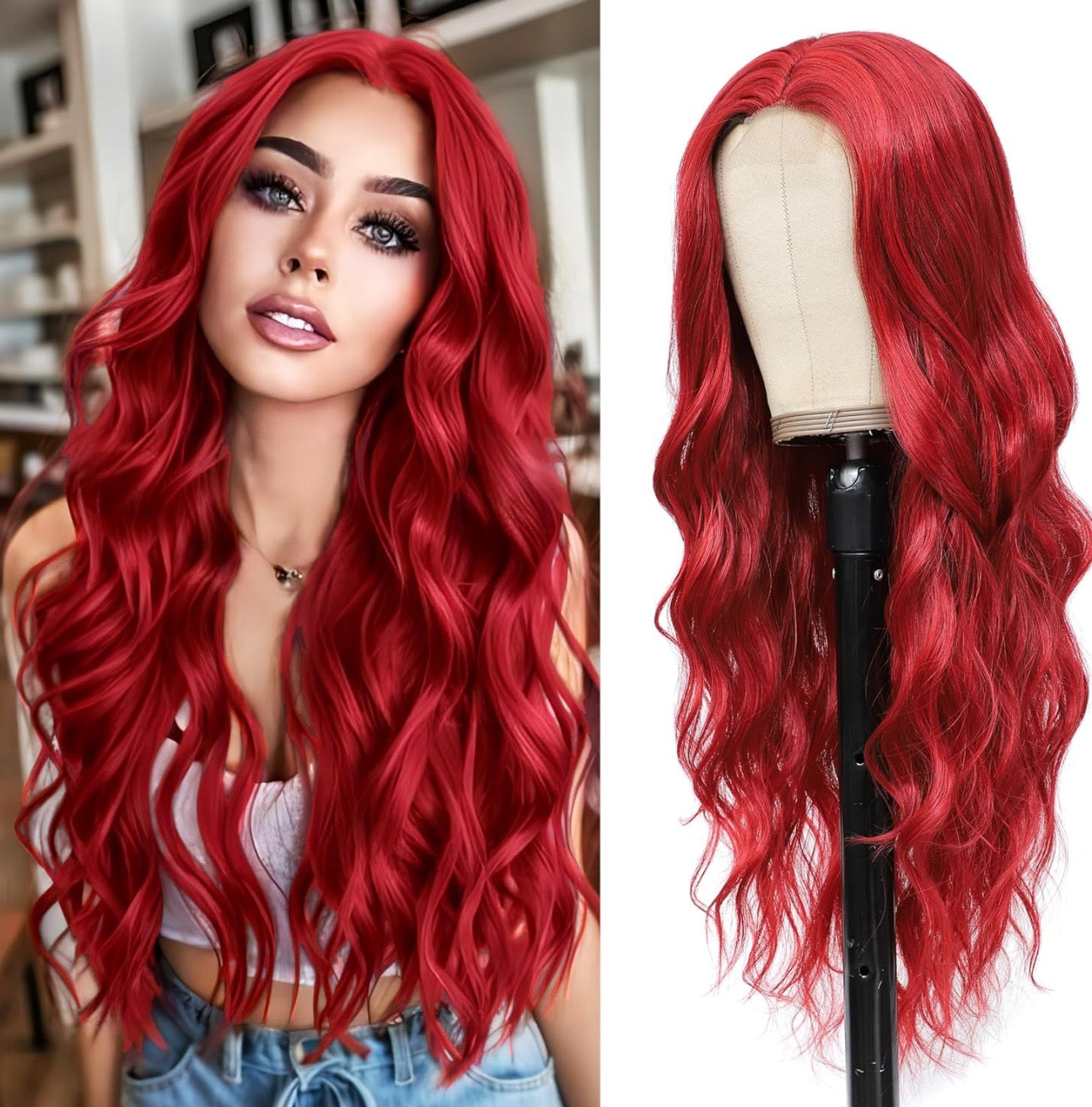 Long Red Wig for Women 26Inch Wavy Curly Wigs Synthetic Heat Resistant Hair Replacement Wig for Daily Party Halloween Costume