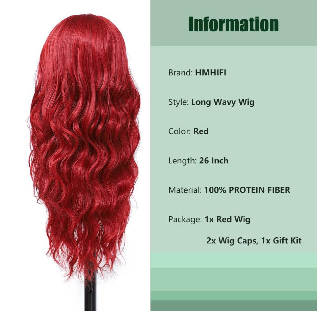 - What’s Included is a 1 x 26inch Long Red Wavy Wig with Hand-knitting small lace part, 2 x Wig Cap.