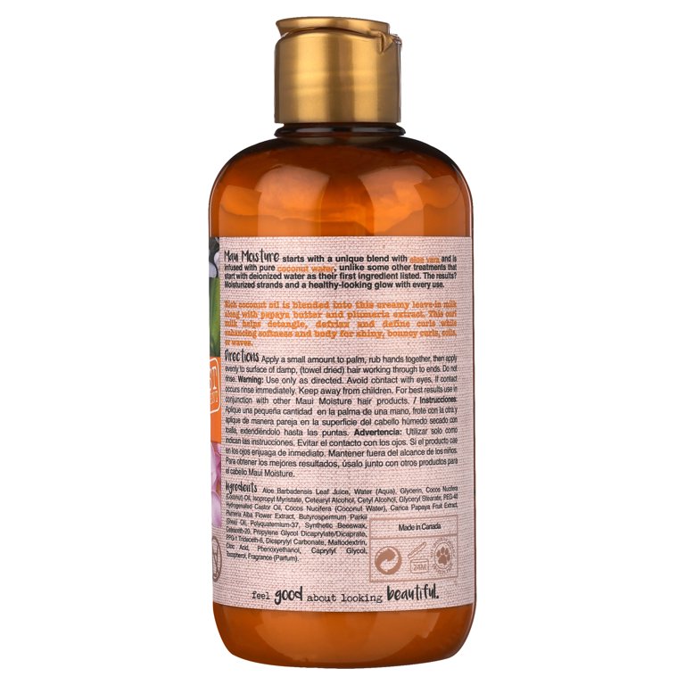 Maui Moisture Curl Quench + Coconut Oil Anti-Frizz Curl-Defining Hair Milk to Hydrate and Detangle Tight Curly Hair, Softening Leave-In Treatment, Vegan, Silicone- & Paraben-Free, 8 fl. oz