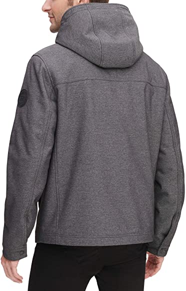 Men's Soft Shell Two Pocket Sherpa Lined Hooded Trucker Jacket