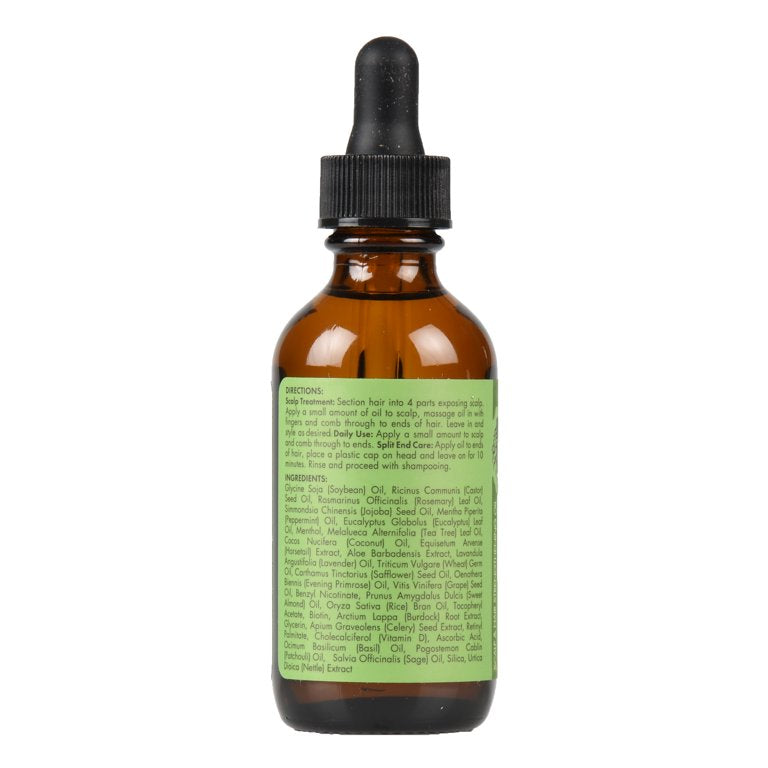 Directions: Scalp Treatment: Section hair into 4 parts exposing scalp. Apply a small amount of oil to scalp, massage oil in with fingers and comb through to ends of hair. Leave in and style as desired. Daily Use: Apply a small amount to scalp and comb through to ends. Split End Care: Apply oil to ends of hair, place a plastic cap on head and leave on for 10 minutes. Rinse and proceed with shampooing. Good for 12 months once opened.