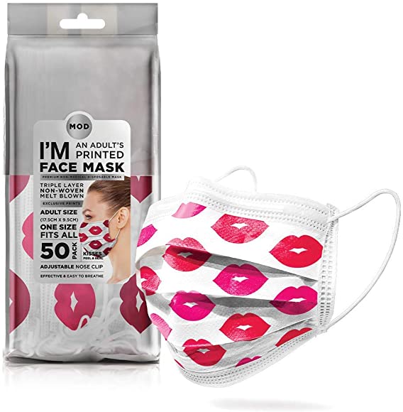 MOD Disposable Face Mask Adults, Children, 50-Pack, Printed, Hypoallergenic