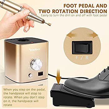 - Foot Pedal and Two Rotation Direction: “Hand” mode and “Foot” mode for you to choose and better meet your requirement. This electric nail drill is equipped with the F-Forward and R-Reverse buttons to change the direction of the rotating bit, enabling any right-handed or left-handed use.