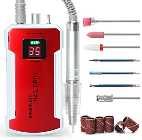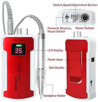 - It is a professional brushless nail drill machine. This E-file nail drill is equipped with high-quality bearings. By easily rotating the speed control knob, it can work smoothly at high and adjustable speeds (0-35000 RPM). This professional nail drill machine with a unique safety protection system to avoid the temperature of the motor is too high.