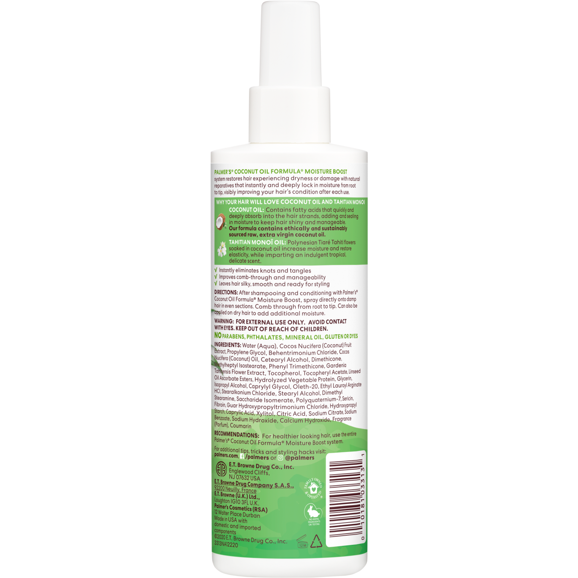 Instructions: Spray product throughout towel dried or damp hair. Comb through to ends to coat hair with conditioning proteins. Do not rinse. Style as desired. Can be used throughout the day as needed. For optimal results use with Palmer’s Coconut Oil Formula daily maintenance and styling products.