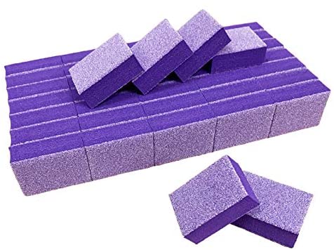 PrettyClaw | 40pc Mini Disposable Nail Buffer Blocks 80/80 White Grit Purple Buffing Sanding Nail File 2 Sided