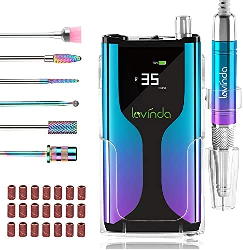 Professional Cordless Nail Drill Machine, Lavinda Rechargeable 35,000RPM Skyspace E File, Portable Electrical Nail File for Acrylic Nails with Upgrade Carbide Tungsten Drill Bits Protective Case