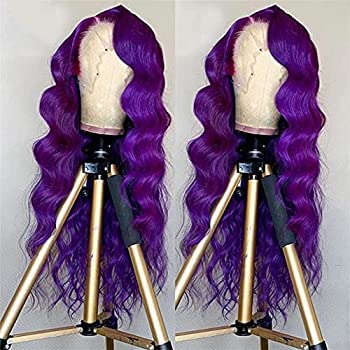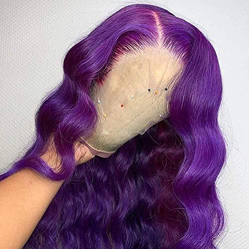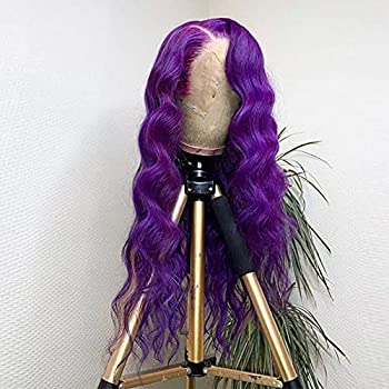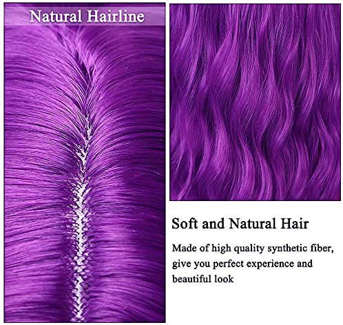 Purple Lace Front Wig Long Wavy Wig Purple Wig Long Body Wave Wig For Women 13x3 Lace Front Synthetic Water Wave Wig Colored Wigs Natural Middle Part Daily Party Halloween Cosplay Use