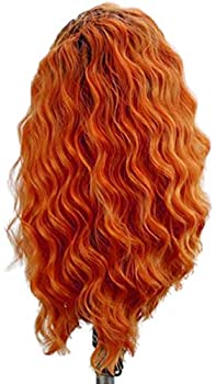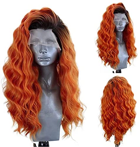 RDY Loose Body Wave Lace Front Synthetic Wig Ombre Orange Long Wavy Lace Front Wigs for Women Half Hand Tied Wig Cosplay Daily Use Heat Fiber Hair (24 Inch, Ombre Orange)