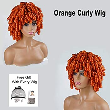 Short Curly Wigs for Black Women Orange Copper Andromeda Soft Afro Curly Wig with Bangs Heat Resistant Synthetic Fiber Hair Wigs for African American Black Women (Orange Copper)