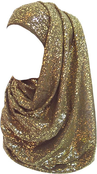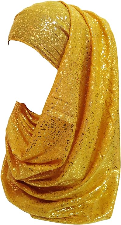 Sparkle Shimmer Gold Glitter Women's Hijab Muslim Head Wrap Scarf Shawl Lightweight