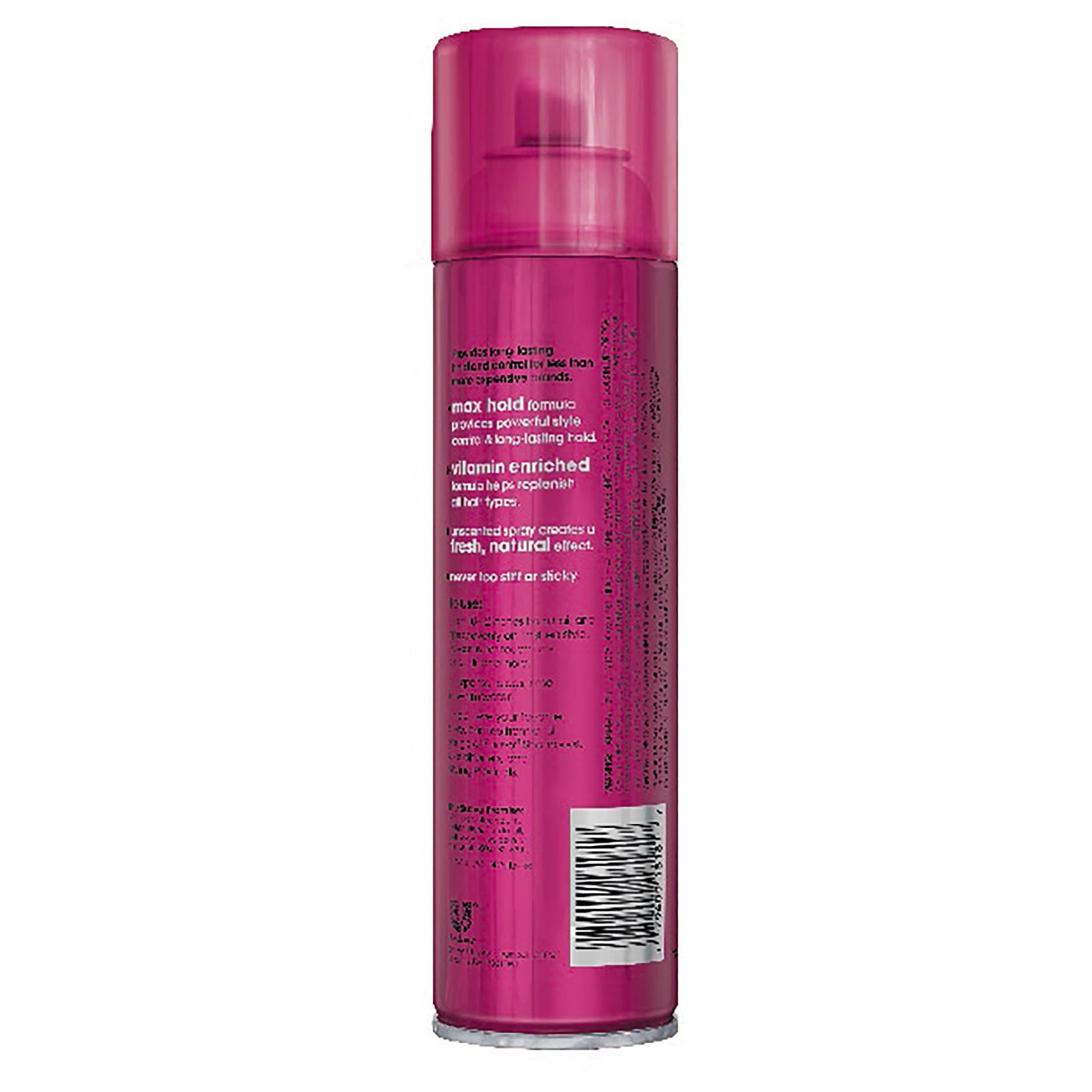 - Suave Max Hold Unscented Hairspray has a vitamin and protein-enriched formula