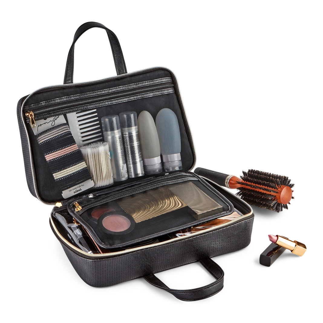 Tartan + Twine Professionista Deluxe Weekender Black Perforatedkeeps beauty tools neatly organized. Clear storage pods, top handles.