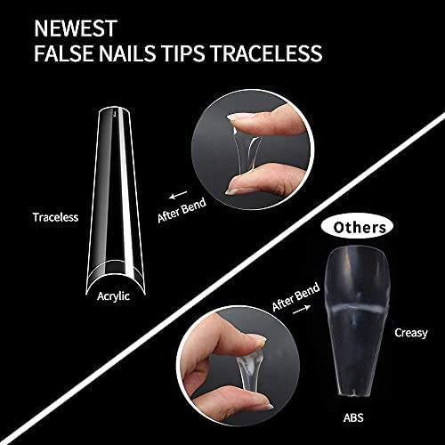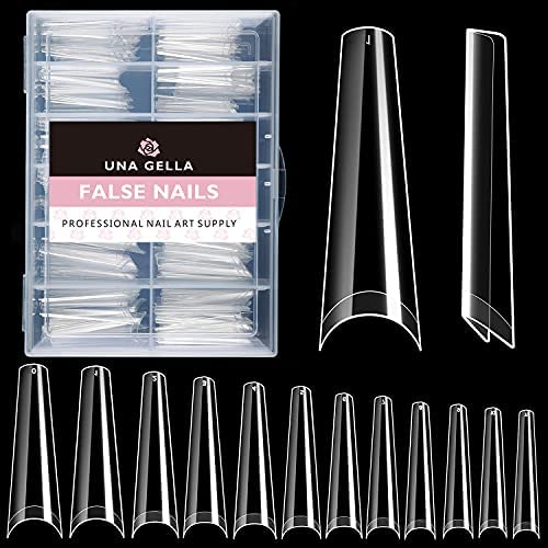 UNA GELLA Extra Long Nail Tips Coffin 200 PCS XXL Long Clear Acrylic Ballerina Nail Tips Half Cover Long False Artificial Nail Tips With Box For Nail Salons and Home DIY