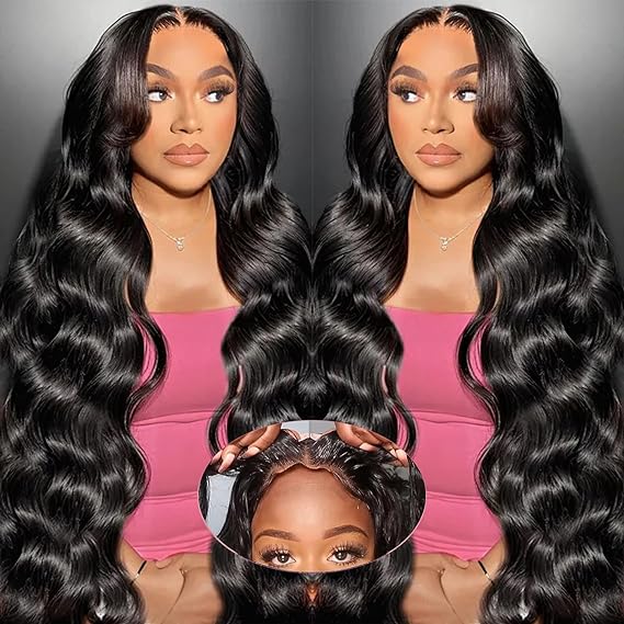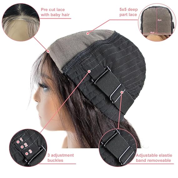 - Upgraded Wig Cap: 5x5 lace closure body wave glueless wigs come with a 3d dome breathable cap, medium cap size (about 22.5 inch)with one removable adjustable elastic band, the band can adjusted to 3 grades, which can fit with most people’s heads; no clips, no combs or glue required; It’s healthy and allergy- free, more comfortable.