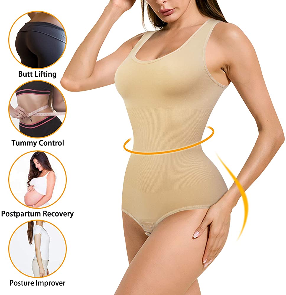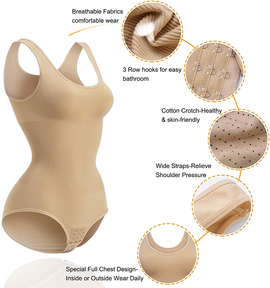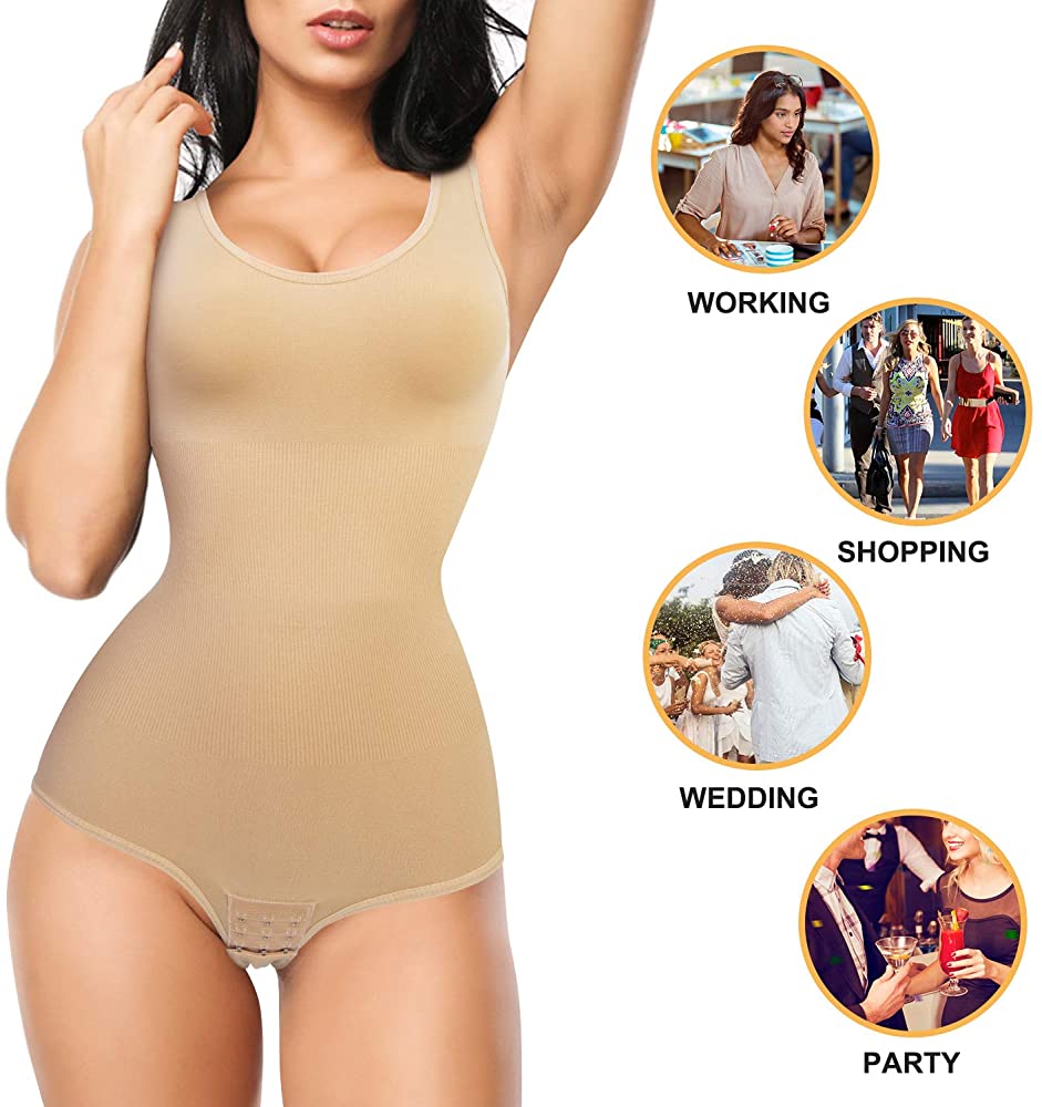 - ★ HEALTHY & SKIN-FRIENDLY SHAPEWEAR: Our women sleeveless tops has two wide and elastic straps, helps relieve shoulders pressure, leave NO over-squeezing marks, let you feel more comfortable and keeping fit. The cotton crotch part has three rows hook closure to adjust comfortably which is convenient for bathroom, easy to put it on & off.