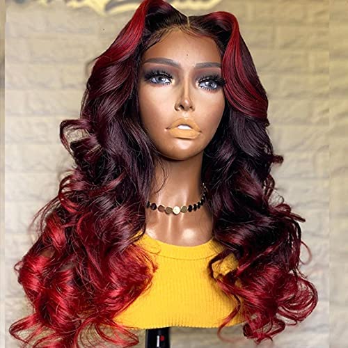 YMS Human Hair Wigs for Black Women 150% Density Ombre Red Transparent Lace Front Wigs Human Hair Pre Plucked 100% Unprocessed Human Hair Wigs(20 inch,13x4 Lace Front Wig)